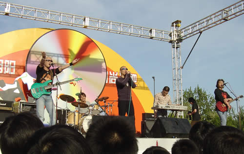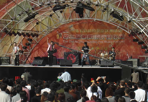 这个是老的摇滚乐队“天堂”演出,就是那个唱“我佛慈悲回头是岸”那个,比较传统的摇滚乐组合,因为他们还讲究自己音乐表达的政治和哲学意义,呵呵,晕