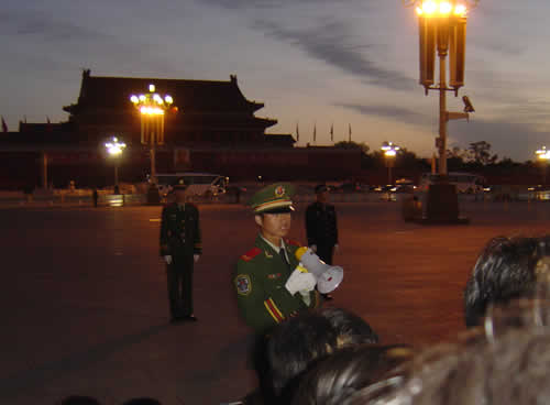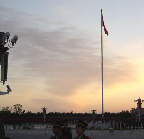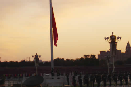 晚上就占纳税人的便宜,睡在宣武门一个宾馆里,今天4:30起床看升旗[razz],没有办法,LP逼的