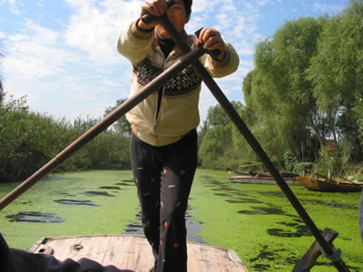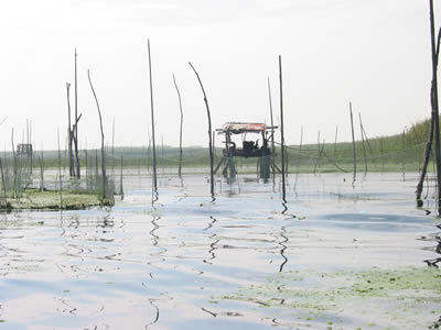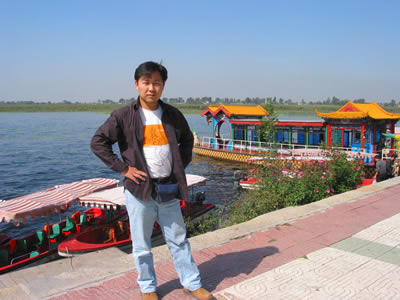 忘了说我们来安新的主要目的是去传说中的白洋淀,这里是宋元的古战场,是华北人民英勇抗击日本侵略者的地方,电影“小兵张嘎”的故事发生地就是这里,下了中巴车,就被骗上了一辆摩的,直奔淀边,中间冲过了政府设置的路障(防止当地老百姓拉黑活,但是防不住)。200块租了条黑船,免了40块的入淀费,晃了三个岛,非常的没有意思,那些岛上都是骗钱的,马戏团啊,模仿“小兵张嘎”的场景啊,甚至还有人妖表演,WK,好好的一个地方就弄成这样。同船的河北人告诉我冉庄就别去了,都是那些村里的农民自己挖的地道,我想想和白洋淀估计好不到哪里去,唉,就这样冉庄的地道战就被我忽略掉了。在白洋淀泛舟想起小时候在西隔湖坐船,在浅河道摸鱼,很是感慨,可是居然傻乎乎的跑河北这个地方来回忆往事,唉没意思,白洋淀以后千万别来了,黑就一个字。一条粘鱼要卖60。