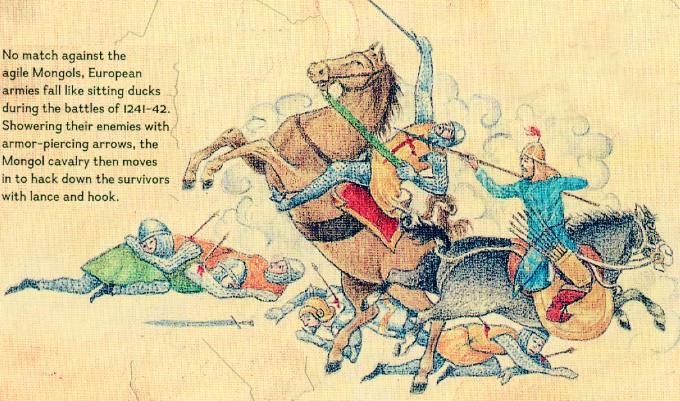 欧洲人的画非常讲究真实和细节,骑着矮小蒙古马(小的就像驴)的蒙古骑兵杀了骑着高大西洋马的欧洲骑兵