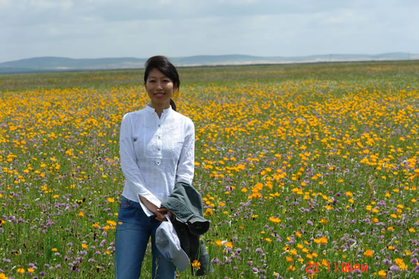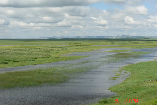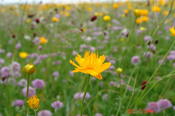金莲花这个名字起得相当优雅,我想肯定不是豪放的蒙古人能想起来的,脚下的草甸相当的柔软,像羊毛的地毯,忍不住脱鞋光脚踩着水走了回来