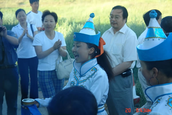 经过7个小时的行程,进入锡盟正蓝旗界,当地欢迎队伍早已在收费站边上等候了,银碗盛上白酒,给每个LD敬酒献哈达,还要高歌n曲,下回有机会去一定要戴上录音设备,听不懂唱啥,但还是挺好听。
