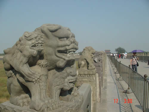 永定河50年前早已经干涸,现在成为越野车爱好者的游乐园,卢沟桥依旧是永定河两岸居民来回的主要途径,形态各异的狮子永远是卢沟桥的象征,狮子颜色的差异应该是不同时期修葺的结果