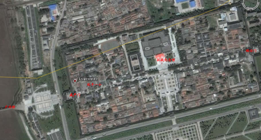 我原来以为日军是从西南的威严门进攻的,那日军驻地应该在宛平城西南,结果在这里发现日军驻地在宛平城的东边,而且炮击也是从东边打过来的,那当年那张著名的二十九战士在卢沟桥头沙包后抗击日军的照片就显得有点奇怪了,他们的面向的是西南啊~~,不明白。