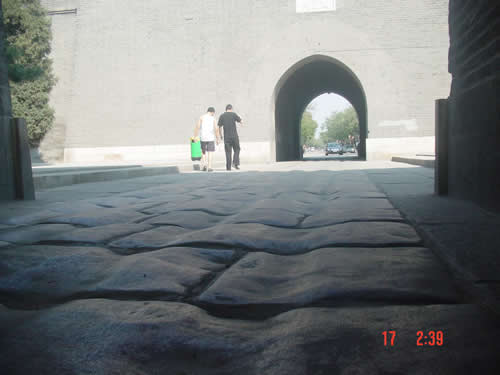 出了休闲室,沿城中心的大石条路往西南走的威严门走,石路上的车辙清晰可见,我几乎都能想象出明清时期牛车马车从这里穿过进入蒙古高原或者南下华北平原,人坐在车上肯定不舒服,颠得能吐出来