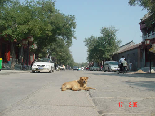 进入这个小四方的城,这里很安静,耳边几乎只有车在大条石路上的发出的咯吱咯吱的声音,一切都很悠闲,连这条狗都大大方方的趴在马路中间,对来往的车辆不理不睬
