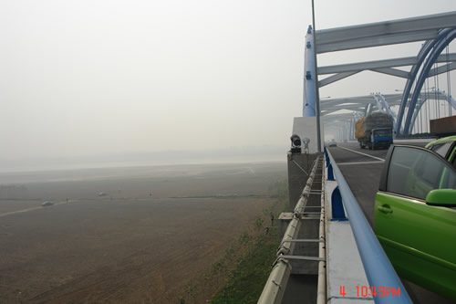 第二天离开万仙风景区去新乡市修了车的左前窗,坏了两天了升不起来,下午走107国道去郑州,路过黄河大桥,黄河也是干涸的一条小溪了,不知道现在壶口是否还有往日的雄风