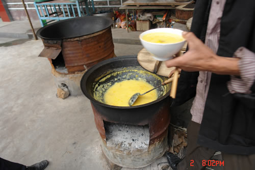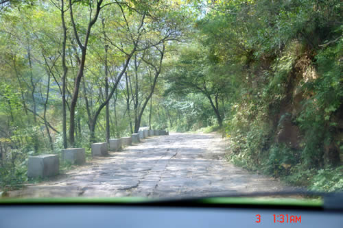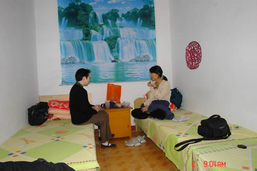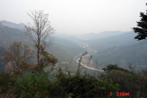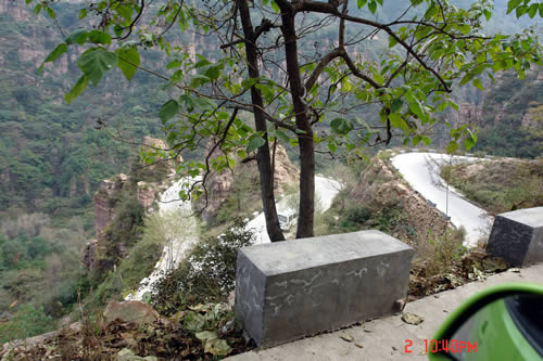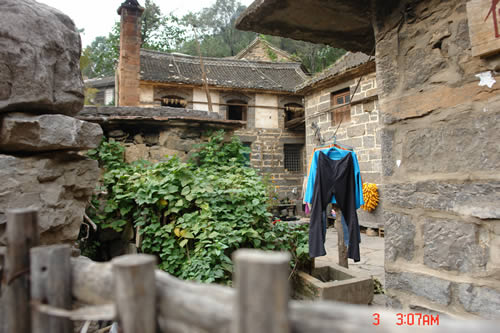 虽然路书上都写着河南新乡出口下,但是我们在公路图册上看到从浚县下似乎更近,而且有条小路直接到郭亮,于是下午不到3点我们从浚县下了高速转县级公路向郭亮开进,一路河南老农们在马路上晒玉米,占了一半的车道,还用石头圈地方,唉晕死(说句大的,中国共和89年了,民主和法制的概念却从来没有真正深入民心,只是在一群未掌权的激进人士口中传说,单单这在马路上晒玉米,无道德无法制,这无道德无法治也无了几十年了吧)。更不爽的事情还在后头,50多公里的县级“山路”托了两次底,终于到了叫高原的一个镇,按照地图册的标示,这个镇的北面应该有条小路去郭亮,可以问了很多人都不知道有郭亮这个地方,我顿时懵了,不知道这个地方说明这些人从来没有去过,如果真有这条小路通郭亮,就不可能没有人不知道。回头10公里找到一加油站,一位大叔很热情地说他上午遇到北京电视台的一辆车去郭亮,他就打电话问人问了很多人才打听到怎么走,于是他又同样给我画了张地图,都说河南骗子多,我遇到的好人还不少呢。按照地图回头20多公里到南村按照路书所说再重新前行20多公里走到南坪。这是天色已晚,入住石家旅馆