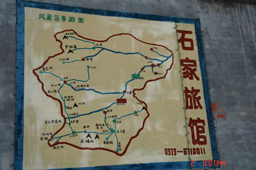 ,注意这个景区叫万仙山景区,相当大,这里我们住了两天,景区所有的床位都是统一的十块钱,农家所有的菜也都是一样的价格,还算干净。