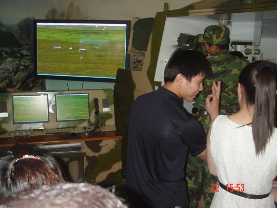 军博展馆里面都是图片和部分实物展,这个是坦克模拟设计训练器,太多人等着玩了,看了一会,觉得实在不怎么样,如果国内也有flashpoint那样的开发团队给军队开发模拟器就牛了,国产的这个实在小儿科