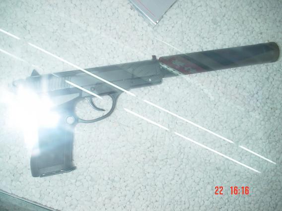 带消音器的92式,用的是和95式步枪一样的口径5.8mm的,消音器太长了