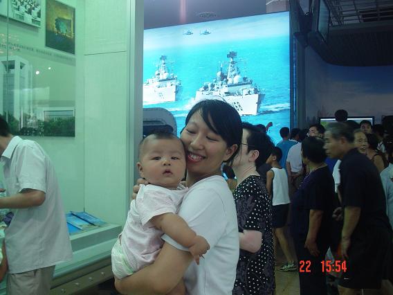 周日等全家睡完午觉已经近三点钟了,匆匆忙忙下楼开车往军博赶,总想着这么晚了人肯定不多了,说不定要关门了,结果到3点半军博一看,还是人山人海,找了半天在一个小巷子深处找到停车的地方,背上豆豆走了十分钟才到人队里,免费的展览不知道为什么还要领门票,经过安检走进大门,门口广场两侧都是野战棚,和N多网上的照片一样,左边是坦克自行火炮运兵车和歼轰7,右边是国产悍马和一些后勤保障设备,