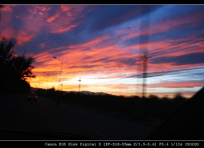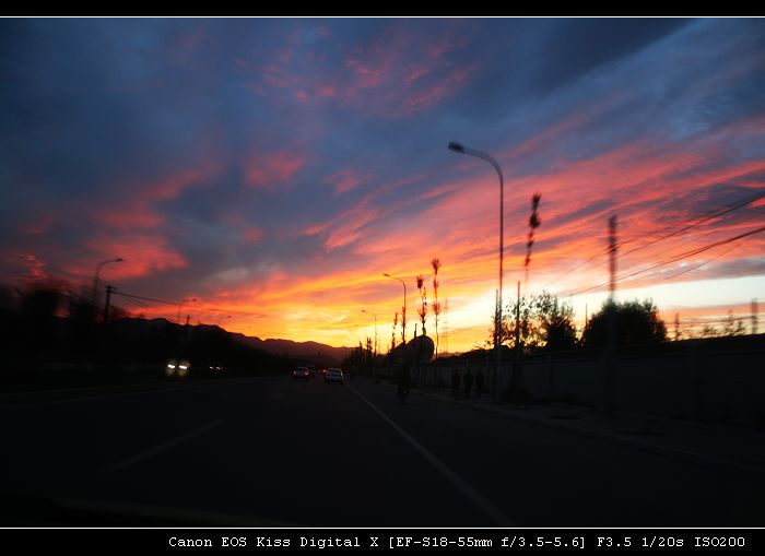 昨天下班时天空的火烧云非常好看,老婆拿出套头用广角拍了几张,可惜在车上,拍糊了,选了2张