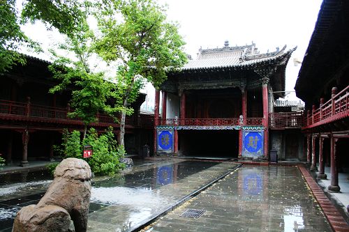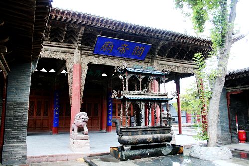 大佛寺最后面是明清时期的晋商会馆,有山西人的地方一定有关帝庙,后面的对联上写着
