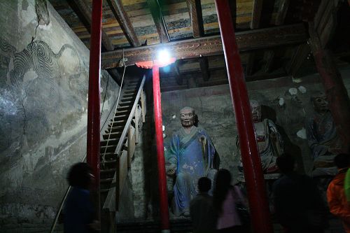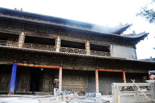 大佛寺从清代到现在已经300多年没有修理只有破坏过了(文革),我们去又赶上修缮,进门便是西夏大殿,施工中