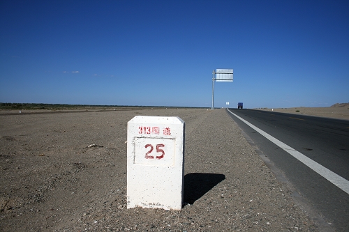留一下纪念,313国道25公里处,此时离敦煌还有97公里