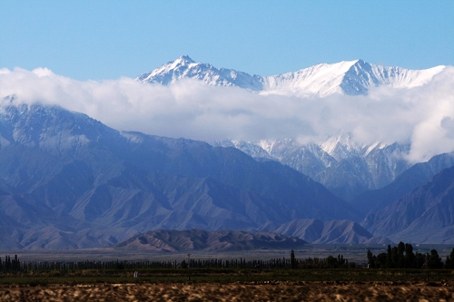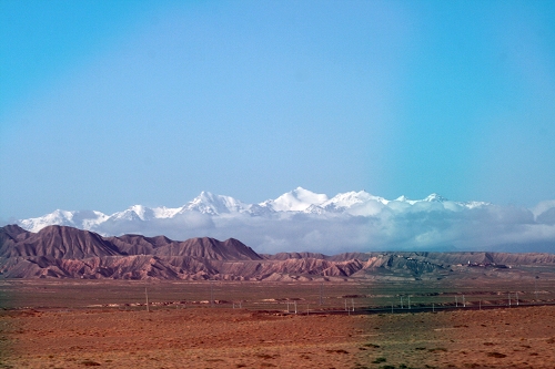 还是早早起床,啰嗦完早饭,絮叨完告别式,终于又踏上西去的行程,下一站嘉峪关。刚上高速,就听到有人说“雪山”,哦,还真是,不细看还以为是一大片云呢