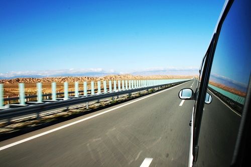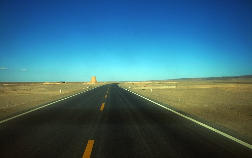 没有尽头的路,左边雪山右边沙漠
