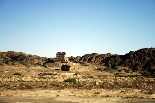 平坦的戈壁中,任何突出的东西都可能是经历了几百年风沙的敌楼和城墙,最后再看一眼,希望下次走这条路的时候它还在