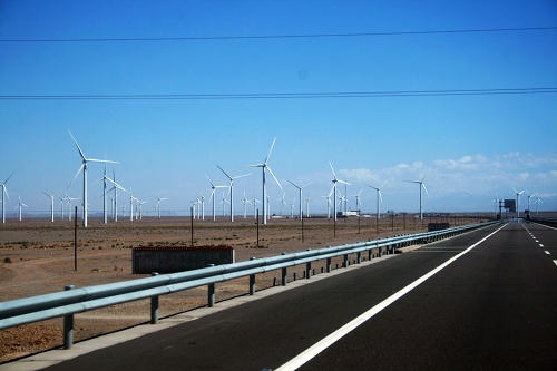 据说这个地区一年只刮一场风,这场风从春天刮到冬天,所以这里投资40个亿建了风力发电厂
