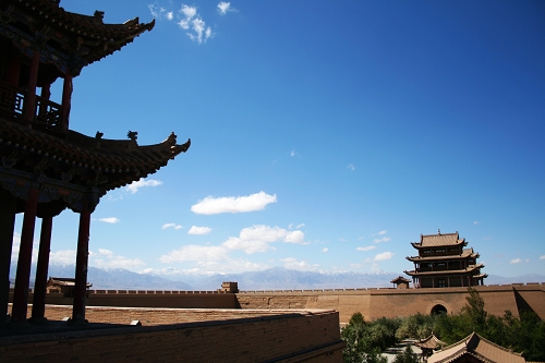 好像出现了绿洲,嘉峪关市到了,原来以为嘉峪关是在沙漠深处的一个孤独的关隘,其实不是,其实是一个规划相当好的城市,嘉峪关就在这个城市的西边,市里每每看到的南北向的道路,路的尽头都是雪山,可惜我懒了没有拍下来。