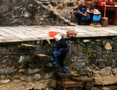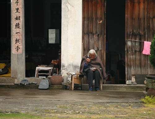 第一次走过这个老人家的时候想拍照被她赶走,回头的时候换上长焦偷偷拍一张