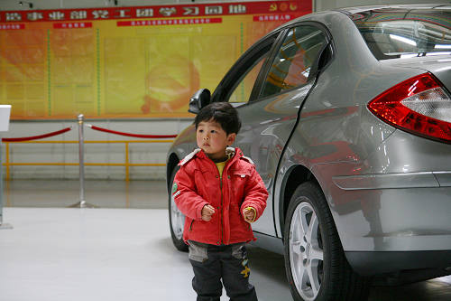 第一晚入宿合肥,第二天渡过长江抵达芜湖,第一站居然是奇瑞汽车厂,好歹是民族企业,巨大整洁的生产车间还是第一次看到,不过基础的数控机床和机器人还都是德国进口的,甚至操作台都能看到老外的身影。豆豆和新出厂的A3三厢车合影。
