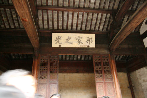 导游说胡氏的辉煌离不开一个家庭,据说当年胡氏先祖定居于此时,风水先生说过,这里是风水宝地,但是龙川是一艘龙船,只有钉在这里才能光宗耀祖,于是胡氏先祖就找了一户姓丁的同住,而且风水先生还给姓丁的祖坟动了手脚,这丁家几百年就是世代单传,到现在还是一家,胡家对丁家当然也是非常照顾,还在宗祠边上给丁家也建了个祠堂,一块大匾挂上“邦家之光”,但是这个邦字那一撇没有出头,意思就是帮忙不要帮过头啊