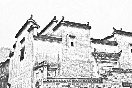 鲍氏宗祠的侧墙,猛然一看就是一副水墨画