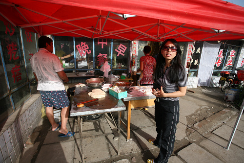 兴寿镇,7:30AM,传说中吃早饭的地方,一个驴肉火烧,一碗豆浆