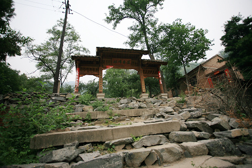 下午5点正我总于坐在了妙峰古道起始处牌楼下的石阶上了
