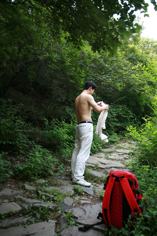 小白已经Tshirt已经湿透,还是小伙子体力好,走的比我快多了,还要帮我背装备,不过我还是自己背了。