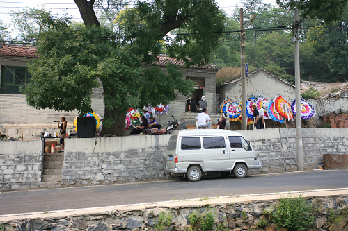总于走到音乐来源处,原来是某家在办丧事,一位女歌手拿着话筒在唱歌,厉害,起码唱了一个小时了