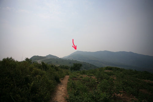 爬上一个小山坡回头看看,此时LP和小白应该已经在红色箭头除登顶了