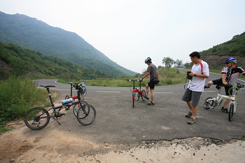 一路下坡,半个小时后再次到达通向妙峰山的盘山县道,休息时遇到几个车友,一色的sp8,几辆还是本田定制版,他们已经弹尽粮绝,出于国际主义精神我支援了他们一袋香肠,不容易,从市里到这里几十公里爬高近1000米。