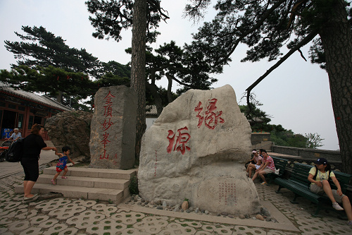 突然看到一棵松树,边上立一牌子,上书“引客松”不是迎客松?对我来说应该是送客松了吧