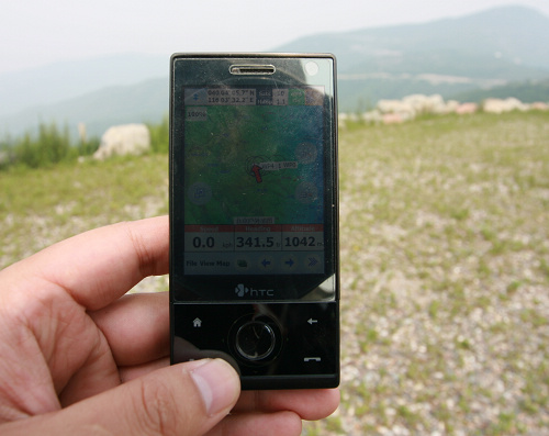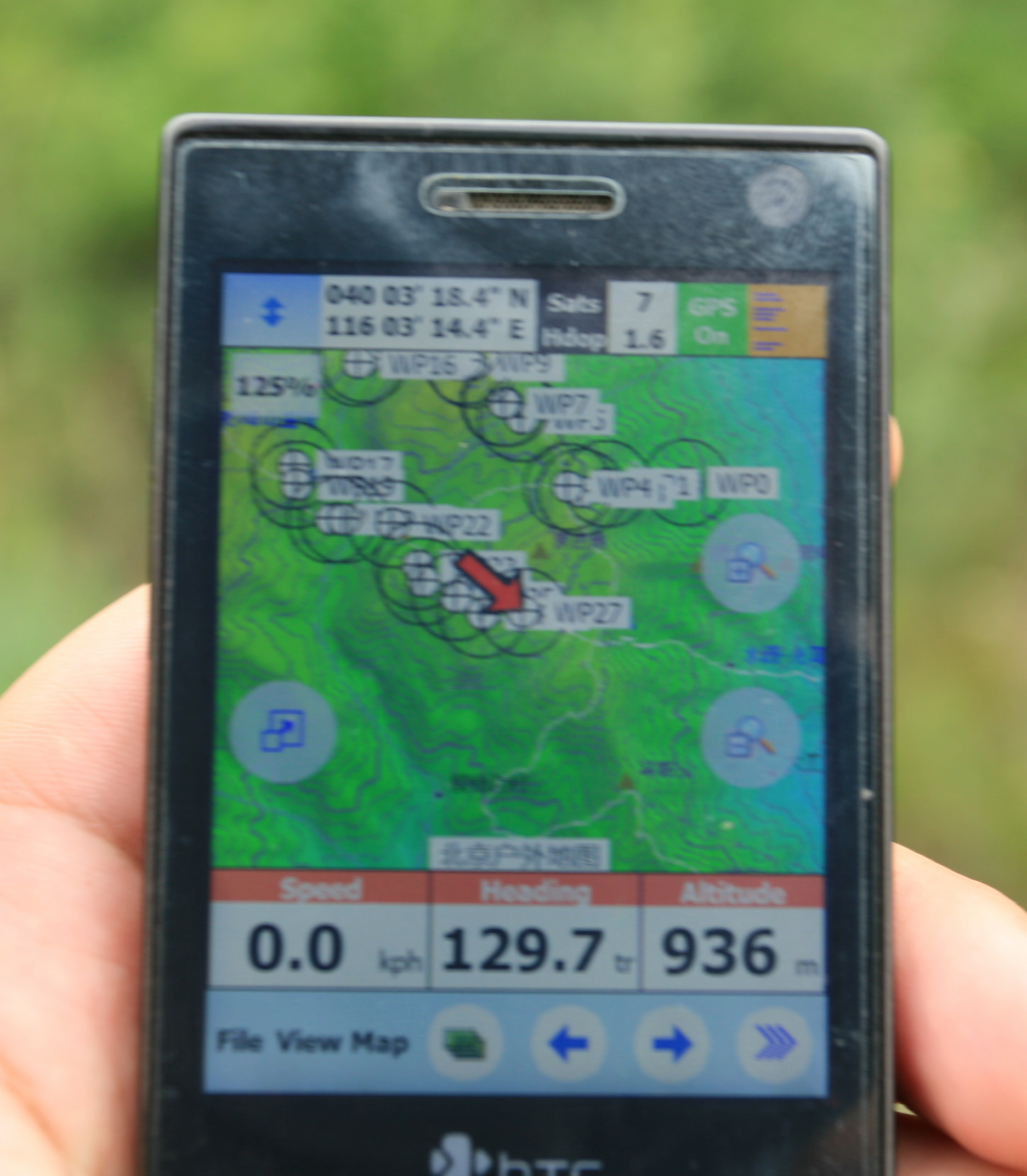 下主峰的时候遇到一行4人的山友,跟着一起走,聊的一时高兴,休息时检查GPS发现该拐弯的地方没有拐,已经下来很长一段路了,和他们打听一下,说是前面有一个路口有路标能去妙峰山,而且去妙峰山的路很难走,告别他们先走,跌跌撞撞中下了100多米,心里非常忐忑不安,如果还要下去几百米再跑上来,而且路难走的话,今天下面的路程可能走不动了
