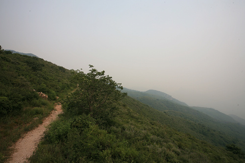 天此时开始下雨了,沿着防火公路走了3-4公里,老婆打来电话,已经在大觉寺门口等我了,5点30