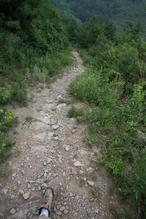 说是山其实只是一个小坡,长满了松树,有点像景阳岗?总于全是下坡了,下坡也不好过啊,膝盖疼