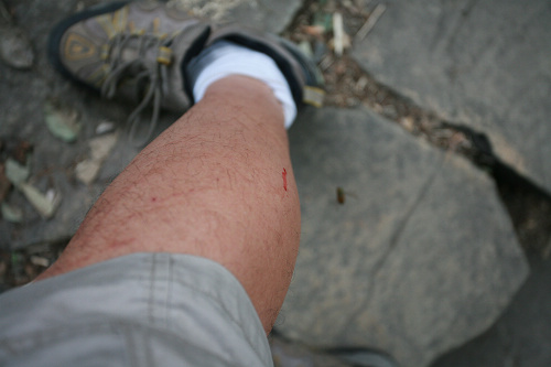 7点30分从阳台山下停车场开始走,刚走几步就被牛虻咬了,上周被咬的地方还没好呢,还流血了,这下导致我这个部位一天中被咬了不下4次,下午的时候隐隐作痛。