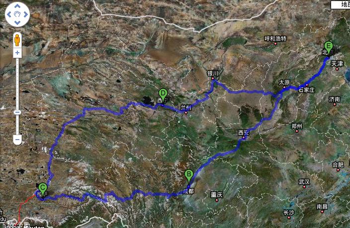 大致行程如下,大概在8000多公里