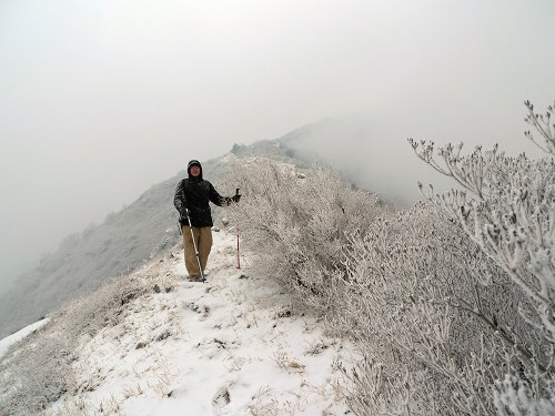 到山脊留个影,第一次冒雪爬山,看到嘴角的不屑么