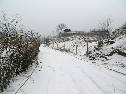 周六上午8点15被电话叫醒,李同学问今天几点,我说9点啊,山脚下碰头,起床刷完牙到客厅一看,晕,怎么外面在下大雪,但是李同学没说下雪不去啊,我要不去,不认耸吗(后来才知道李同学也是在床上打的电话,还没看窗户外面)。