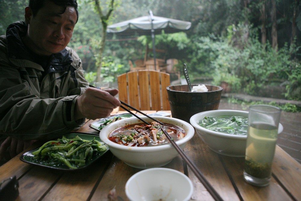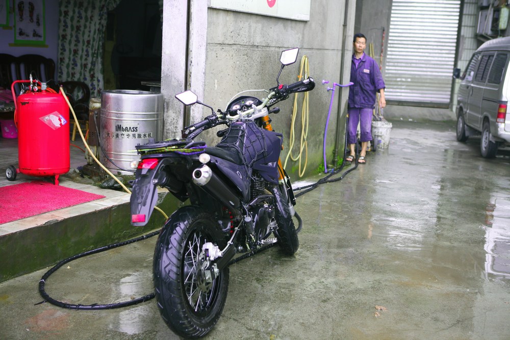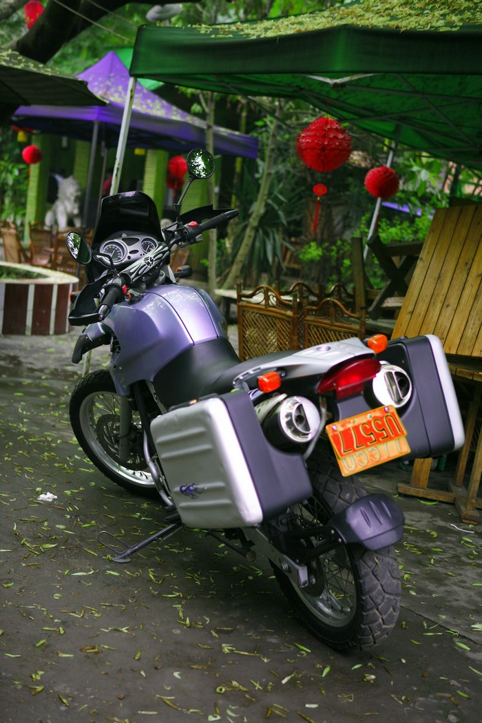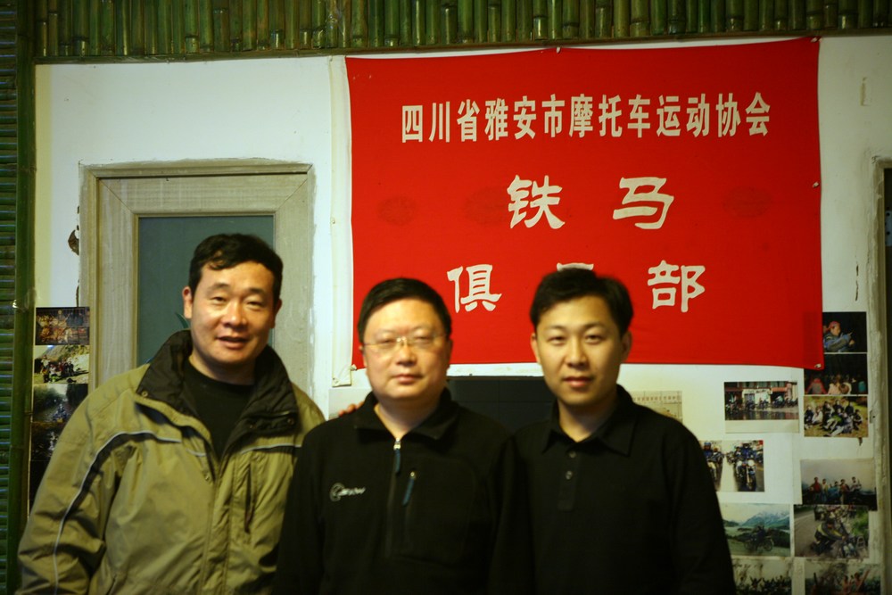 过了金鸡关隧道就看到了马踏飞燕的标志,给雅安铁马俱乐部的打了电话,一会一个骑650的兄弟来接我了,今晚就住俱乐部,东升竹庄。安顿下来第一件是还是去俱乐部修理店打理车子,紧螺丝,打磨后备箱太高的螺丝,上油,再买油箱包。