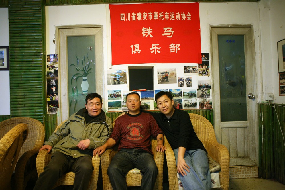 整理完毕,就和南通一起进藏的摩友老哥,俱乐部徐总还有另一位雅安摩友喝茶聊天,参观俱乐部的光辉历史,还有徐总的一辆本田金翼,一辆宝马1200,俱乐部还有辆ktm,看到我直流口水啊。