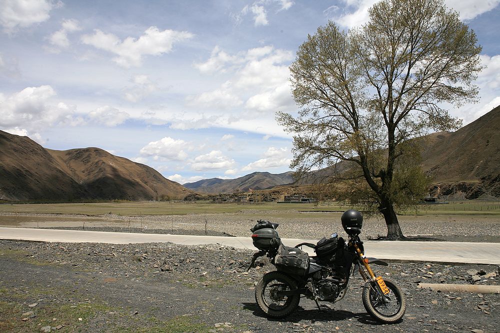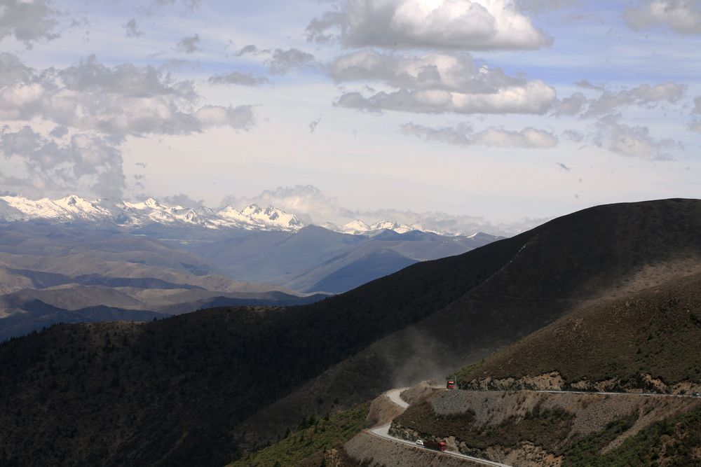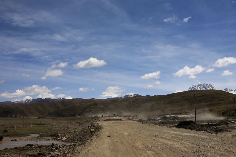 我很少拍路况,八美到塔公这几十公里在修路,一路的灰尘和石块,但是我的三狗子让我体会到了烂路飞奔的乐趣,一路超越摩托和汽车,终于到塔公了,回头拍一张黄土漫天的路吧。