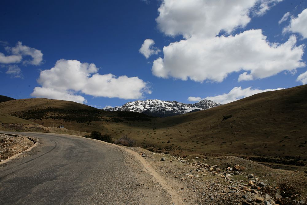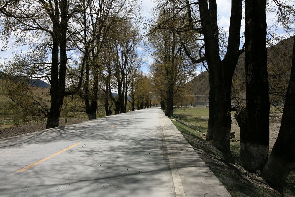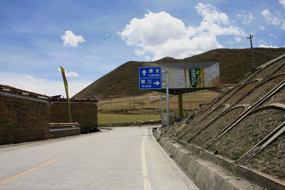 过了塔公,终于出现了水泥大路,这个真就是大路了
