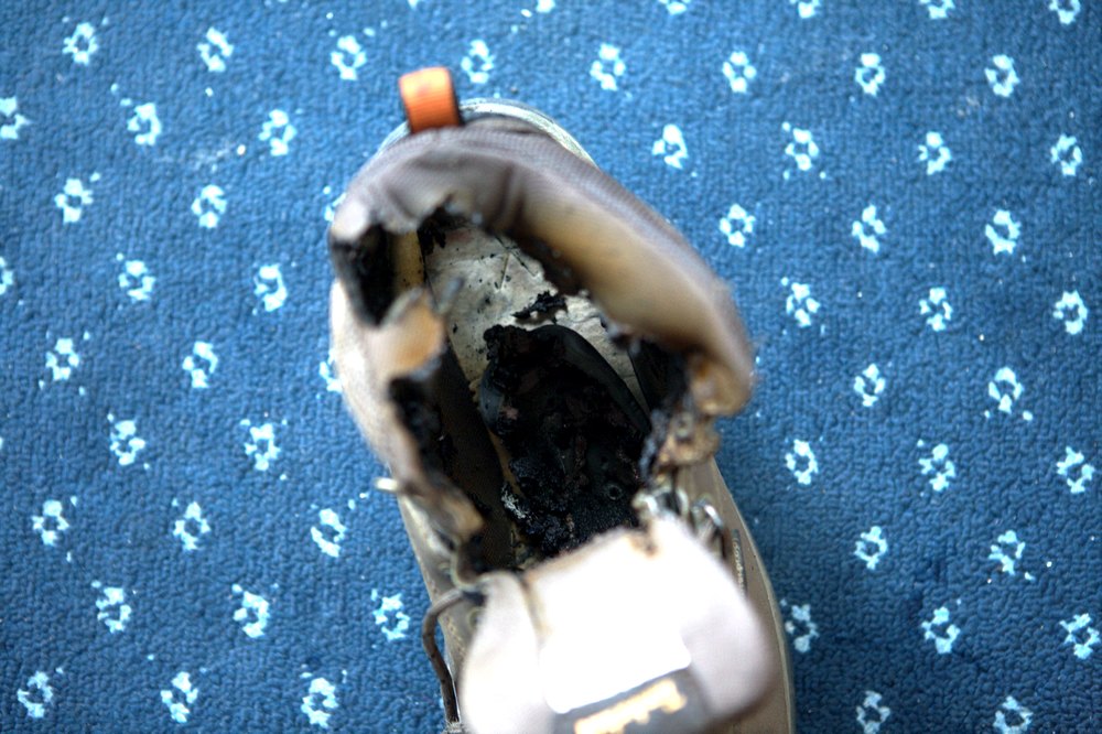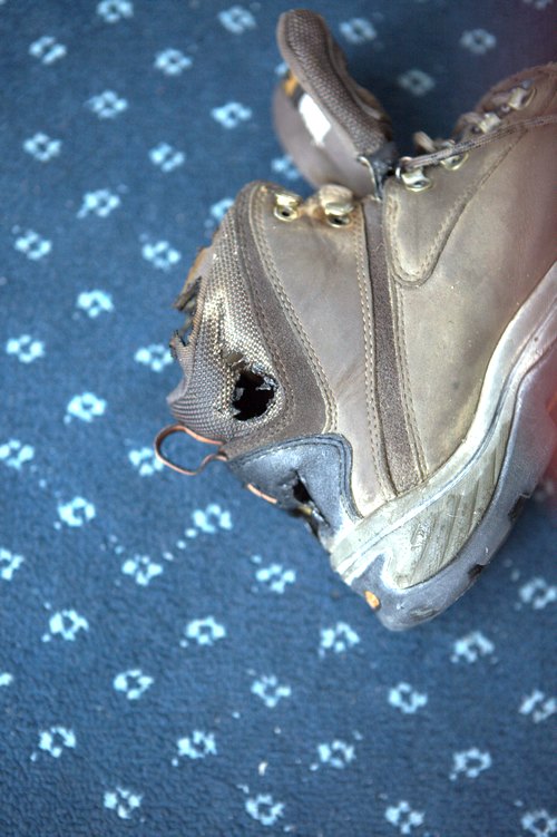 下午1点多到波密,雨还是一样的大,找宾馆住下,开始脱下湿衣服,拿出吹风机吹干鞋子,老五的吹风机功率强大,我们俩坐着聊天的时候就把我的登山鞋吹着了,满屋子的糊味,这跟我一年的鞋子,陪我走过多少山路,走过多少省市啊,今天就这么烧了,不知道还能买到我满意的鞋子吗,我比较挑剔的。