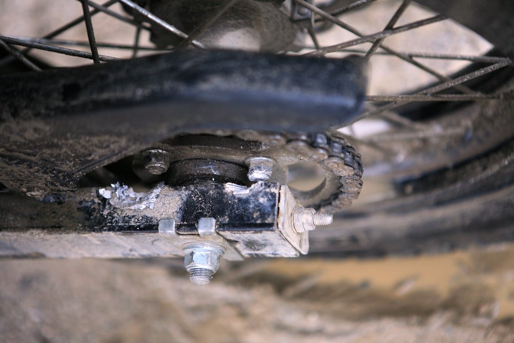 在一段搓板砂石路上,我的三狗子终于出问题了,后轮牙盘的螺丝没有上紧,颠出来了,把连接杆卡死了,动弹不得,我原以为是陷进沙地了,下来一看才知道原因,招手让老五过来拿工具,老五帮我松开连接杆,把螺丝拧进去,幸好他带的工具多,应该多感谢他。没有他在,我可能就要拦车找工具碰运气了。