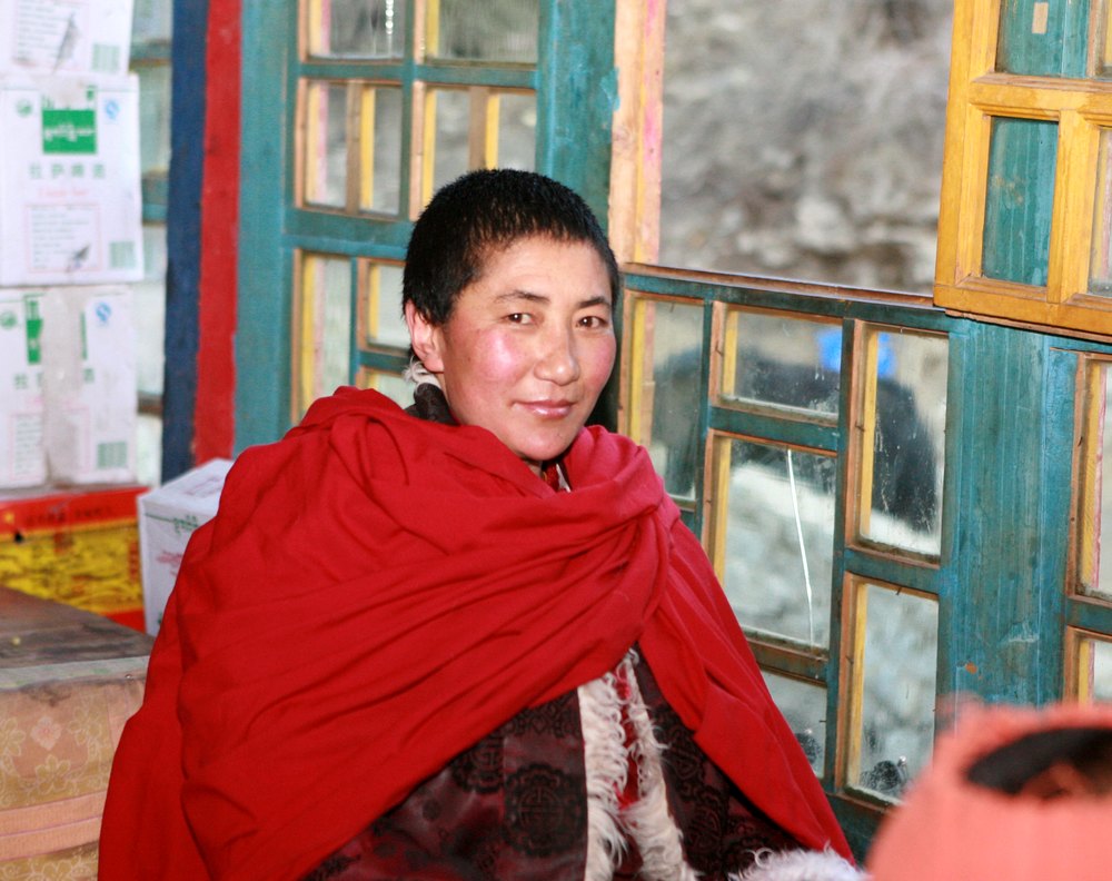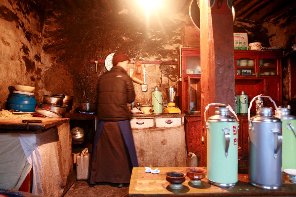 7点多到寺庙饭馆吃饭,这个德仲寺里面都是尼姑,这位在给我煮藏面,4块钱一碗